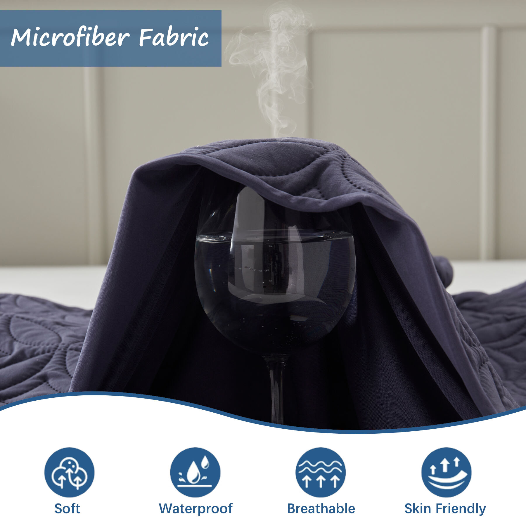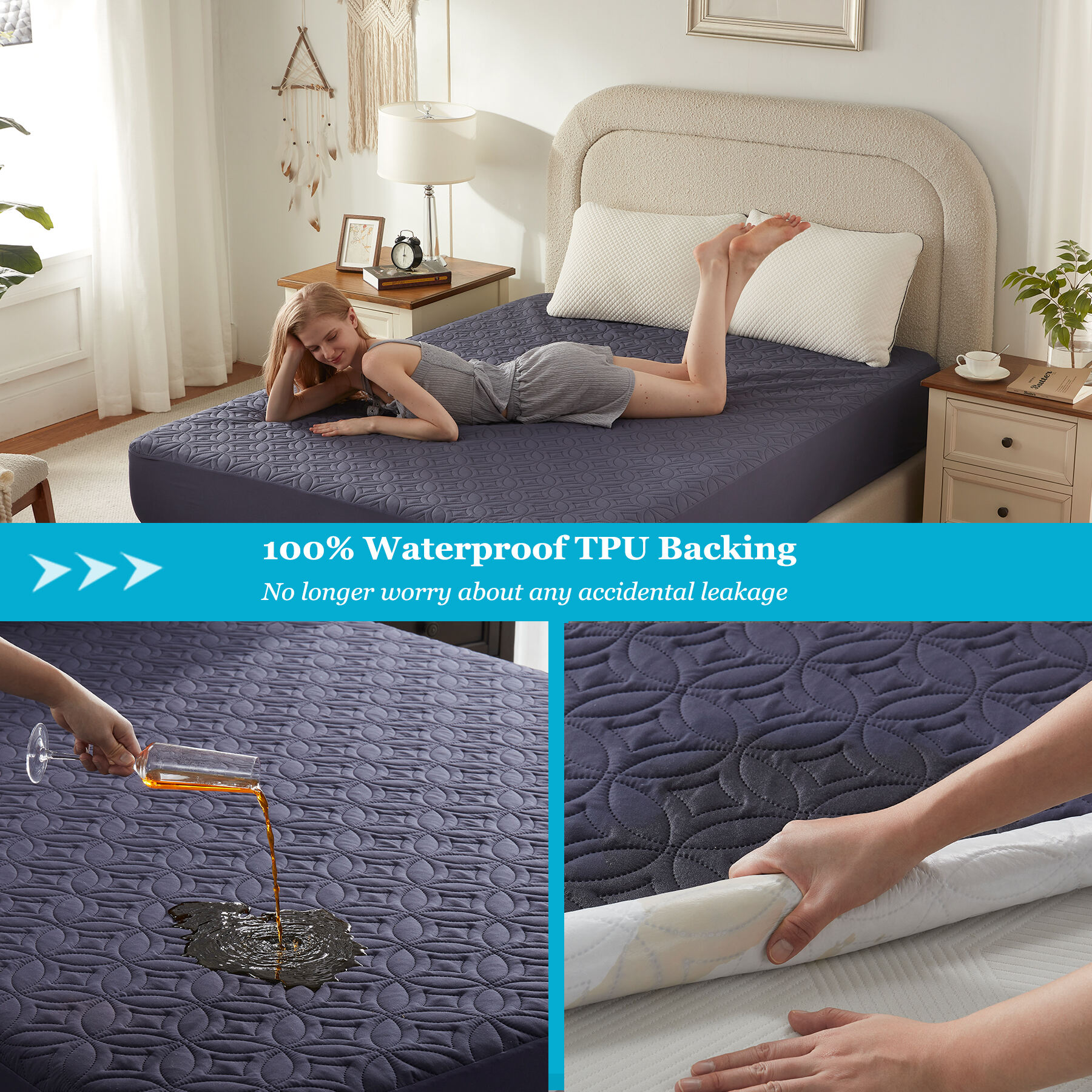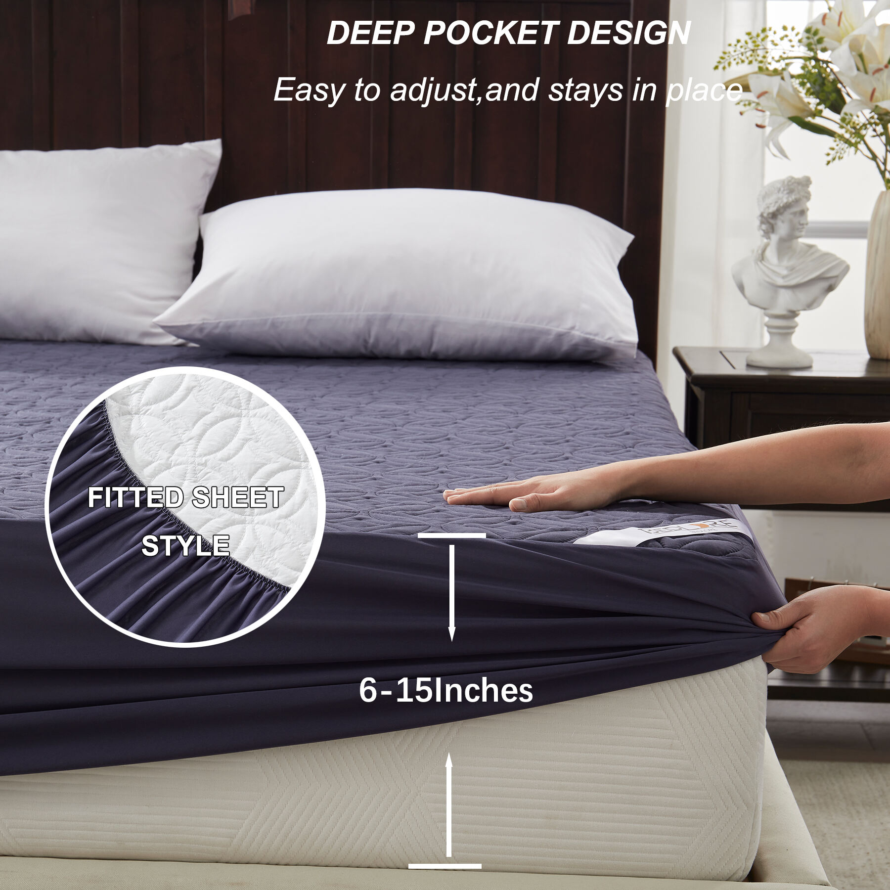 100% Waterproof Hypoallergenic Mattress Protector with Deep Pockets 6-15 inch ,Breathable Mattress Pad for Hotel Home(Navy Blue)