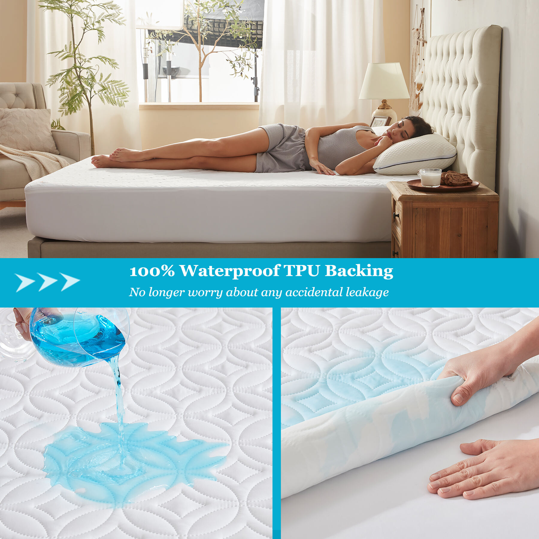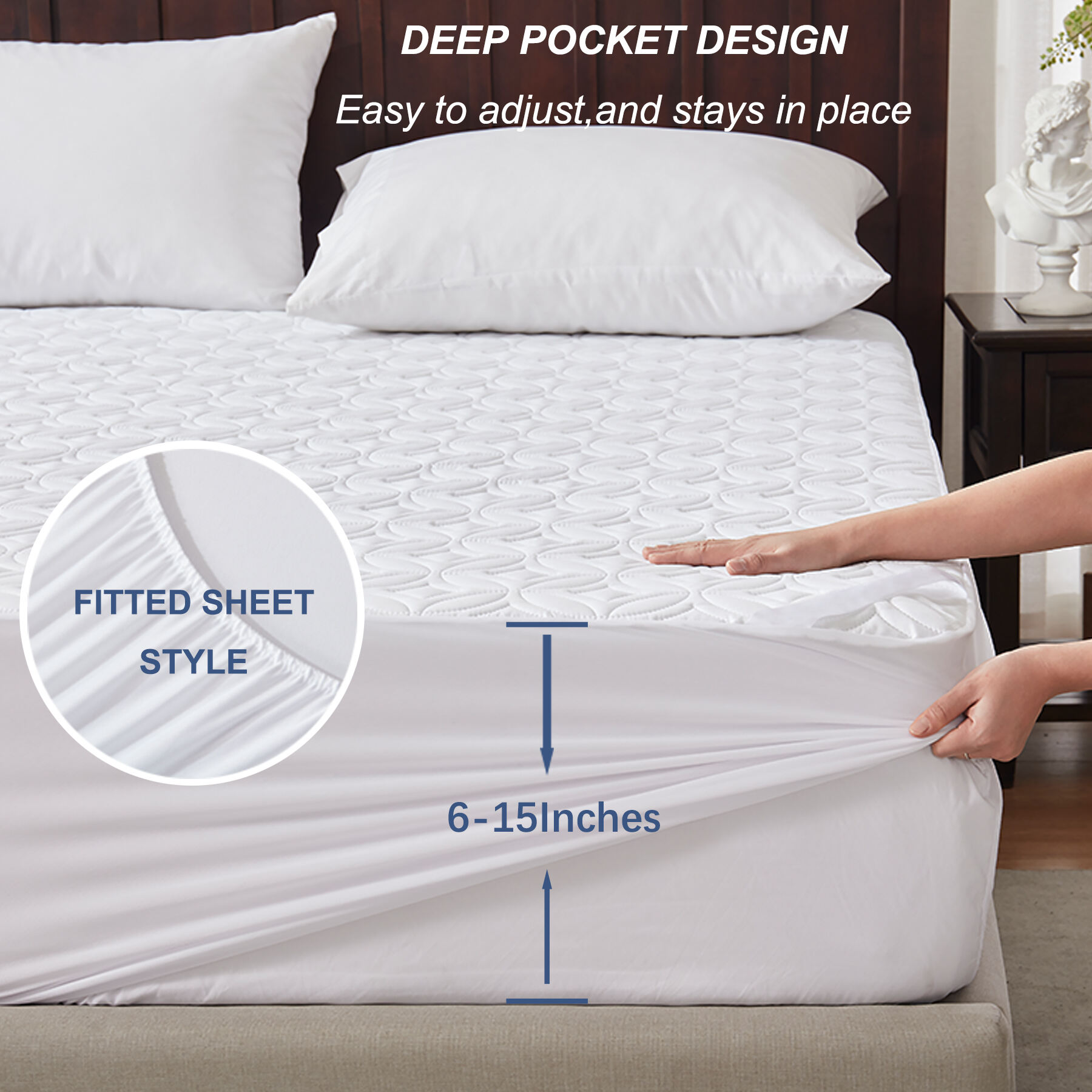 100% Waterproof Hypoallergenic Mattress Protector with Deep Pockets 6-15 inch ,Breathable Mattress Pad for Hotel Home(White)
