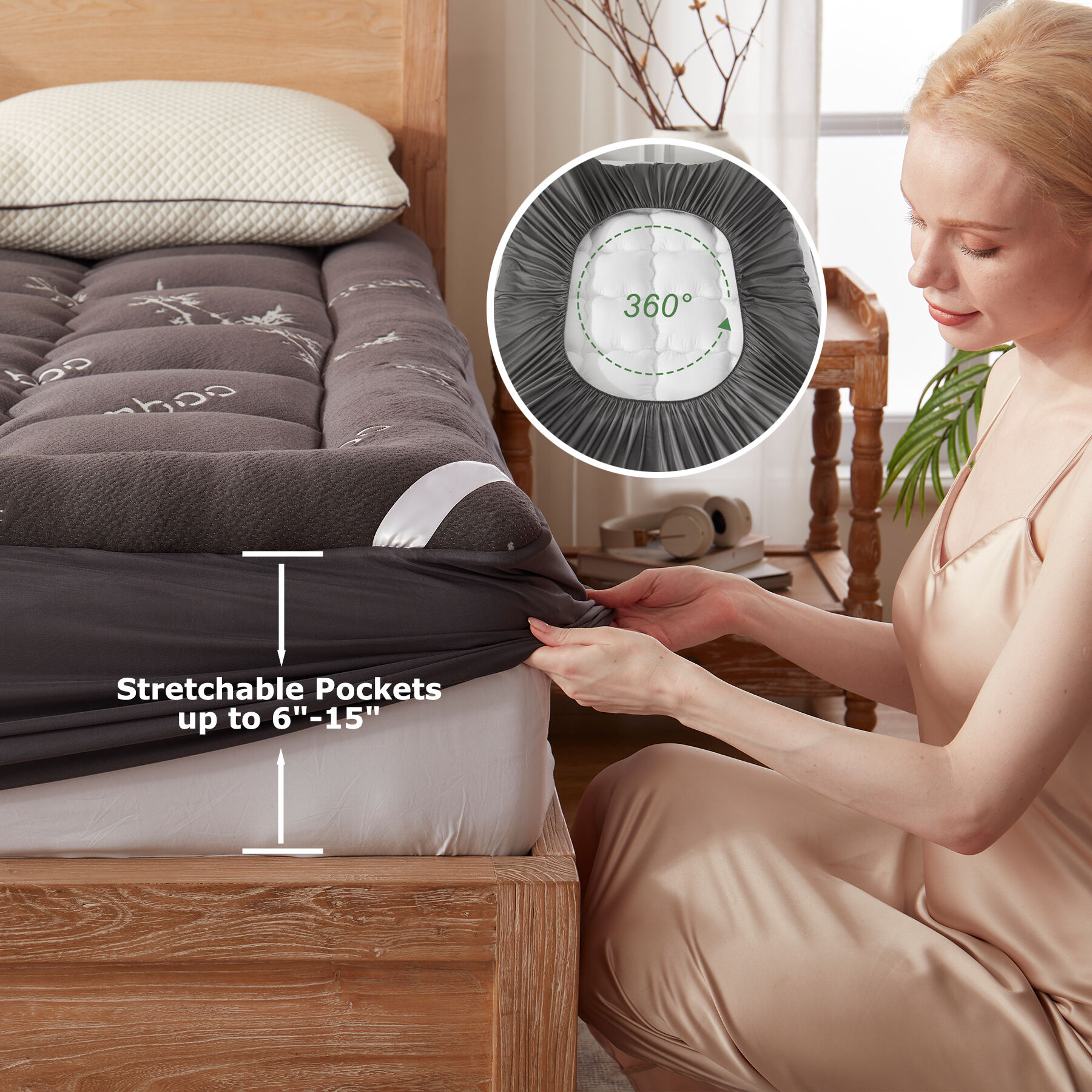 Luxury Soft Breathable Mattress Topper Deep Pocket Mattress Pad for Back Pain Cooling Bamboo Quilted Mattress Pad(Gray)