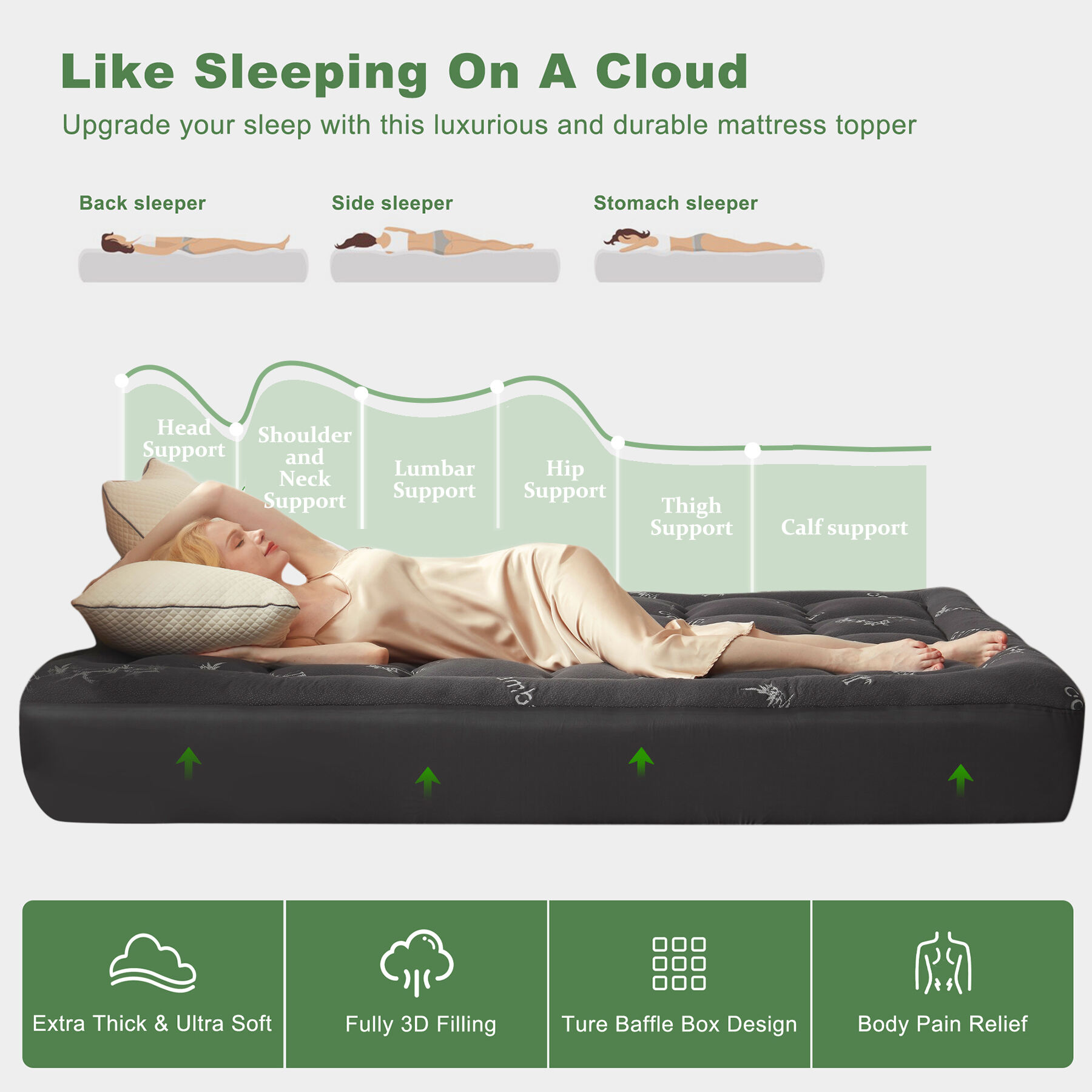 - Cloud-Like Comfort & Pain Relief: Filled with 100% supersoft polyester, the topper adds a plush, cloud-like layer of cushioning to your mattress. It eases pressure on your back, shoulders, and hips, potentially relieving minor back pain and discomfort caused by firm mattresses, letting you wake up feeling refreshed.