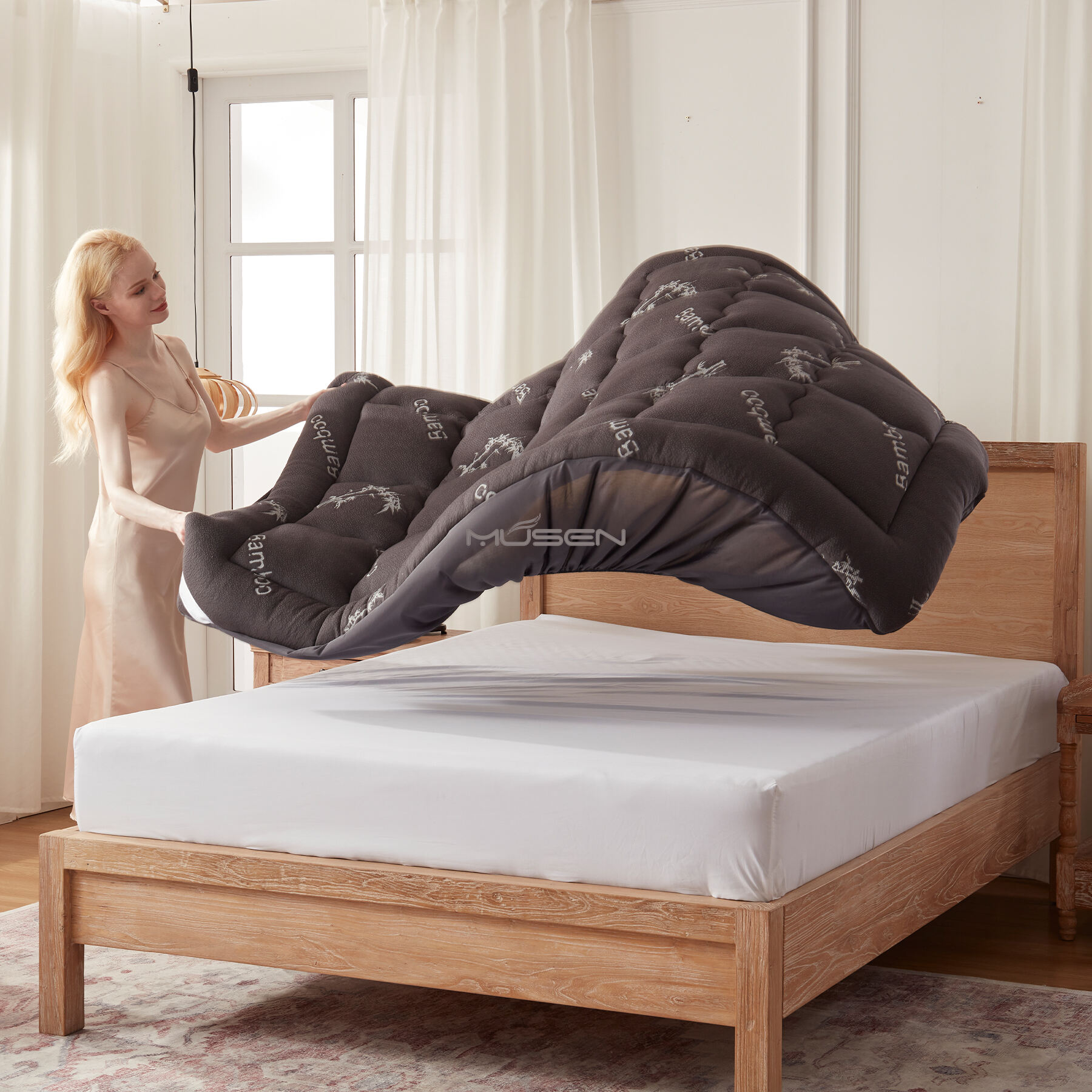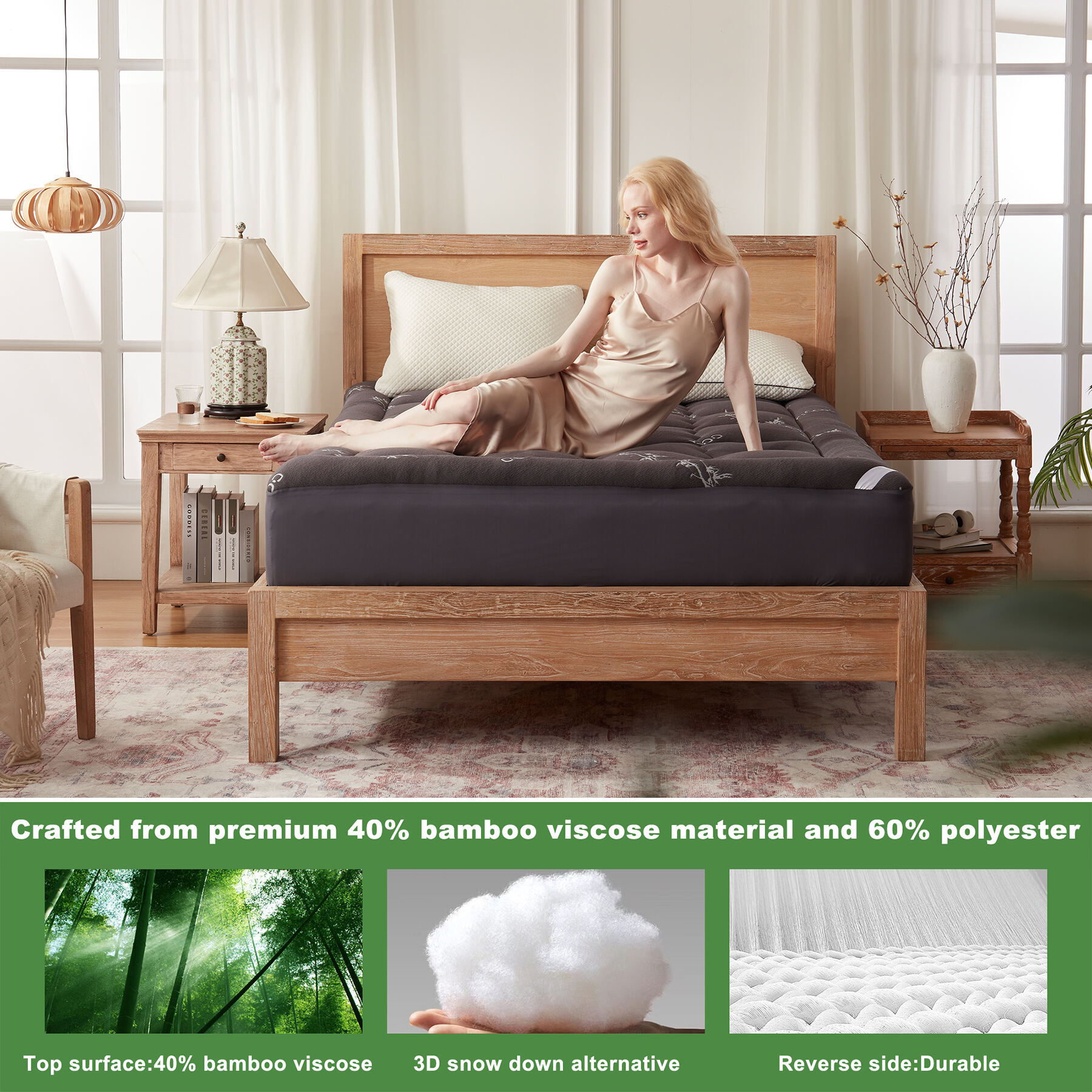 - ULTRA SOFT & Skin-Friendly: The MUSEN Queen Mattress Topper (60"x80") is crafted from a premium blend of 40% bamboo viscose and 60% polyester. Bamboo viscose brings natural softness and smoothness, while polyester enhances durability—together, they create an ultra-soft surface that feels gentle against even sensitive skin. Free from harsh chemicals, this environment-friendly topper avoids irritation, making it perfect for adults, kids, and anyone with skin sensitivities.