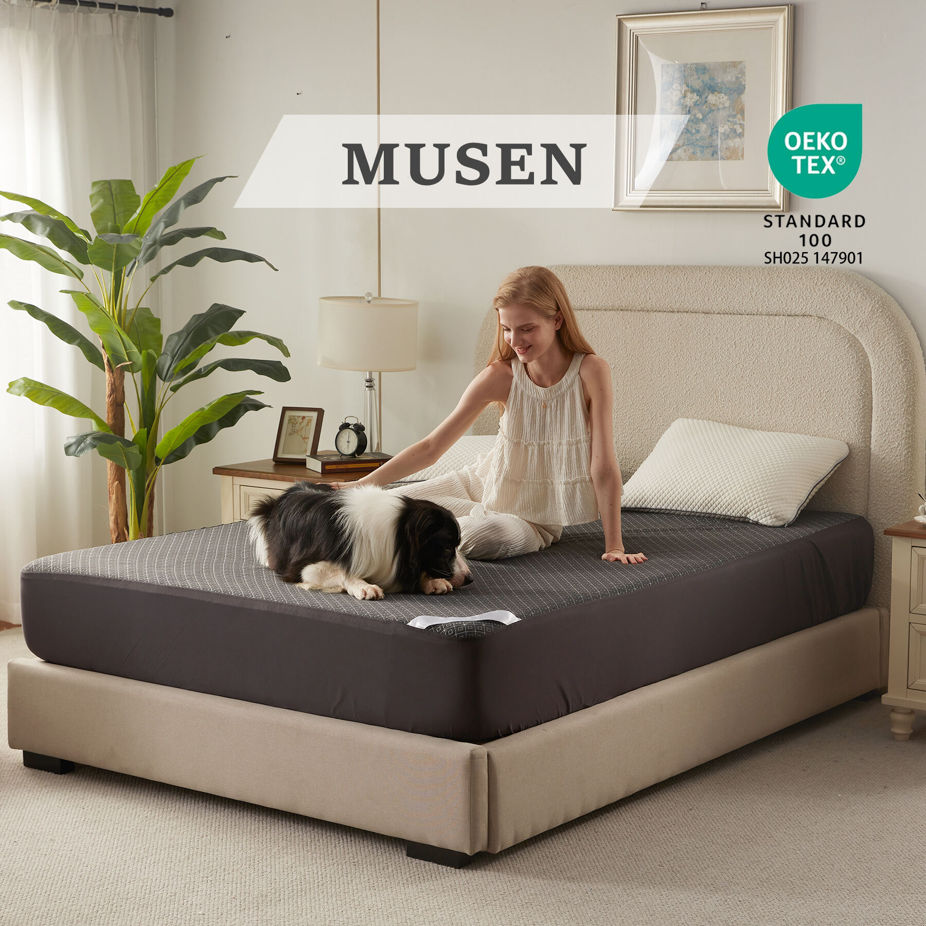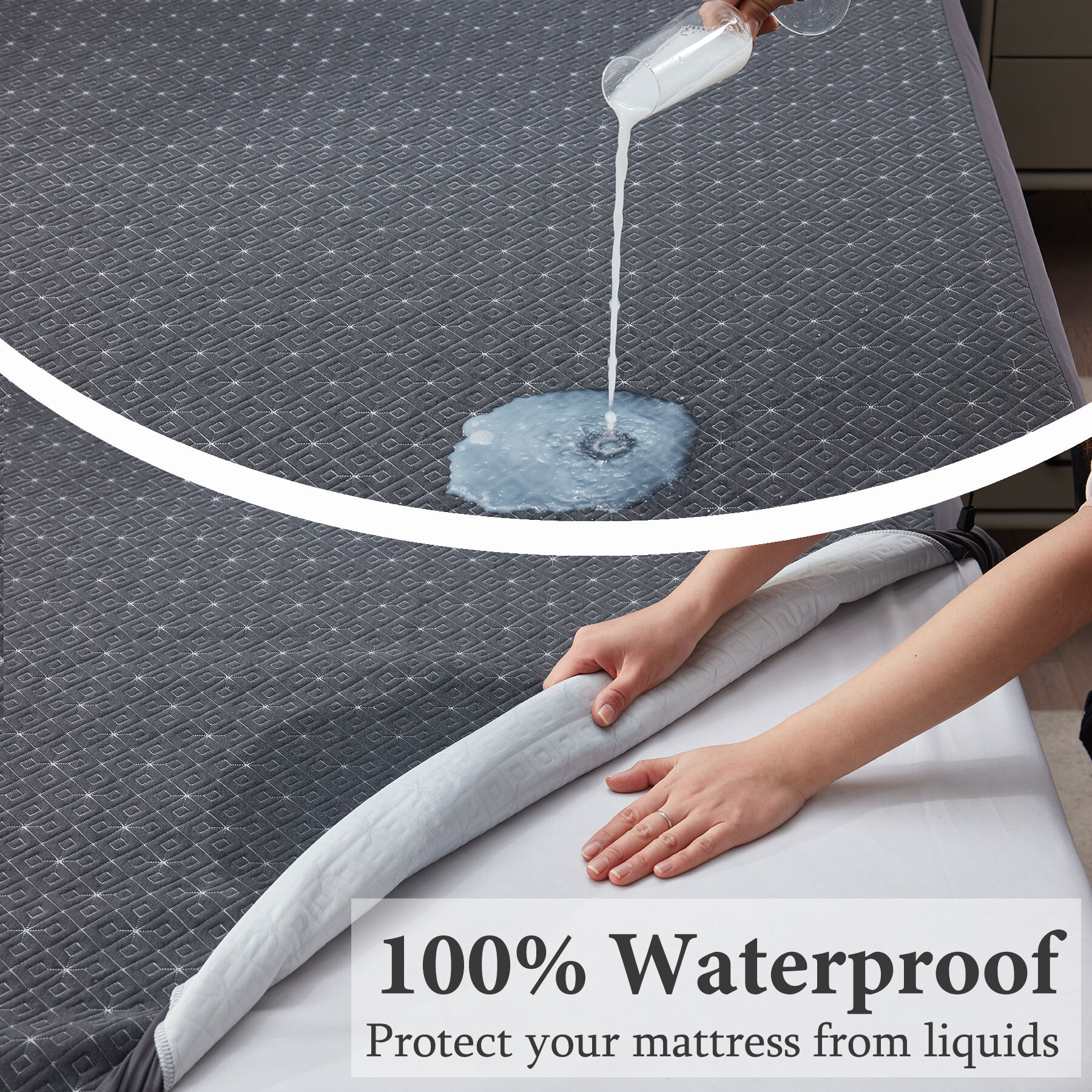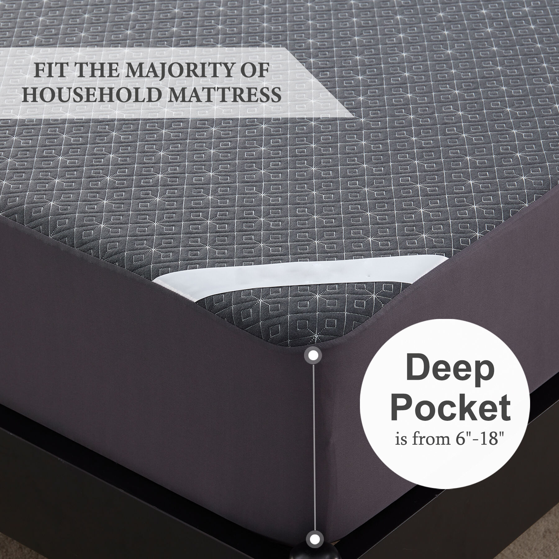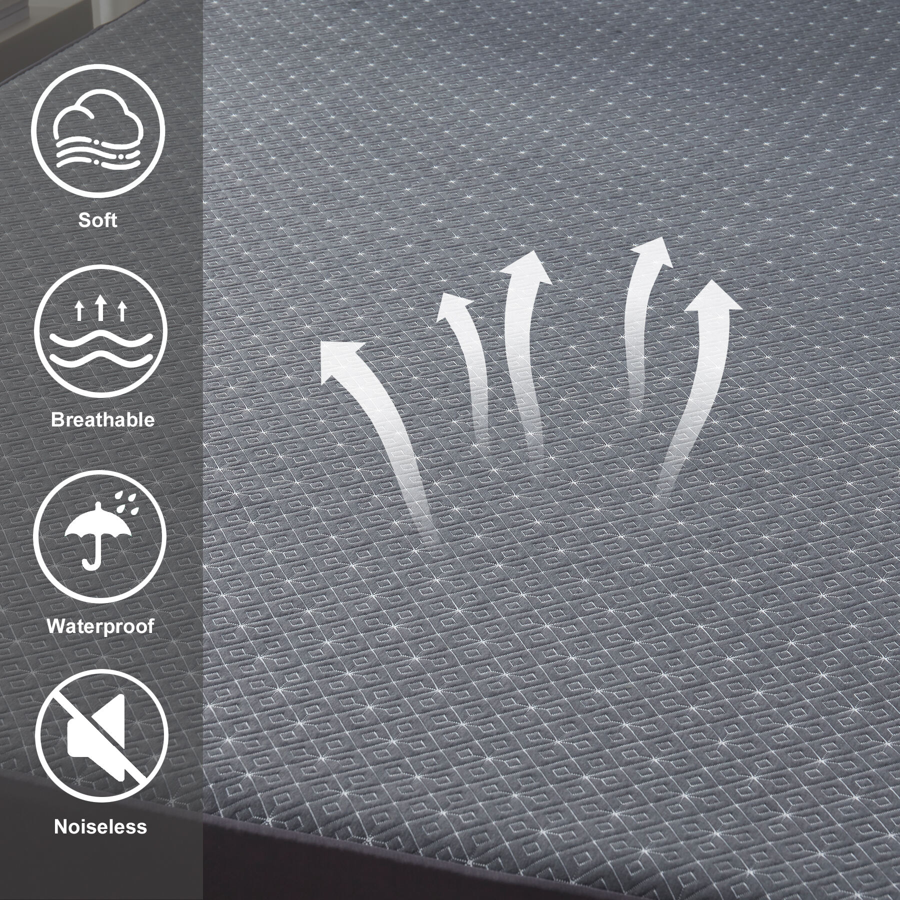 MUSEN Waterproof Mattress Protector,Breathable Noiseless Mattress Cover Fits 6"-18", Soft Breathable Mattress Pad Machine Washable(Dark Gray)