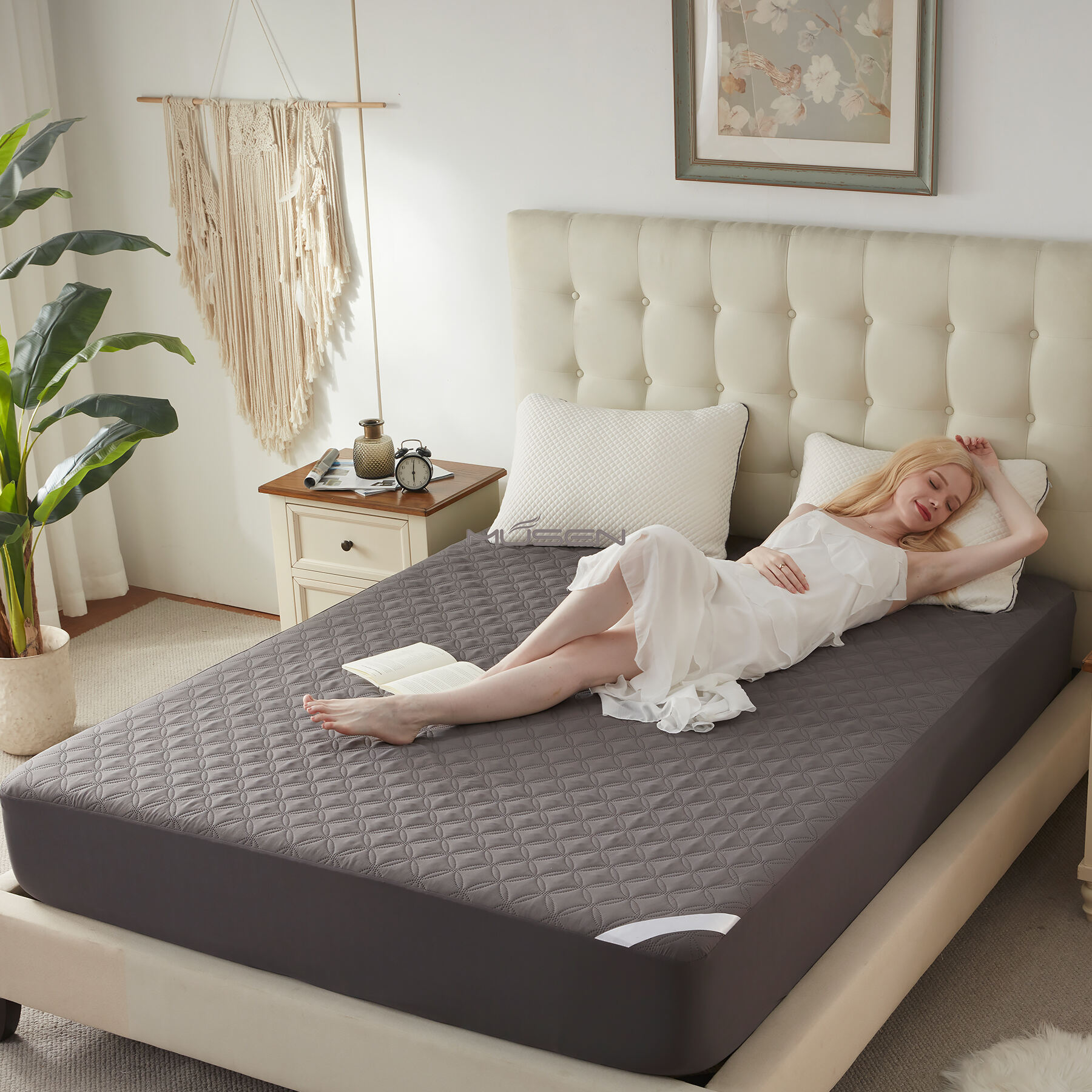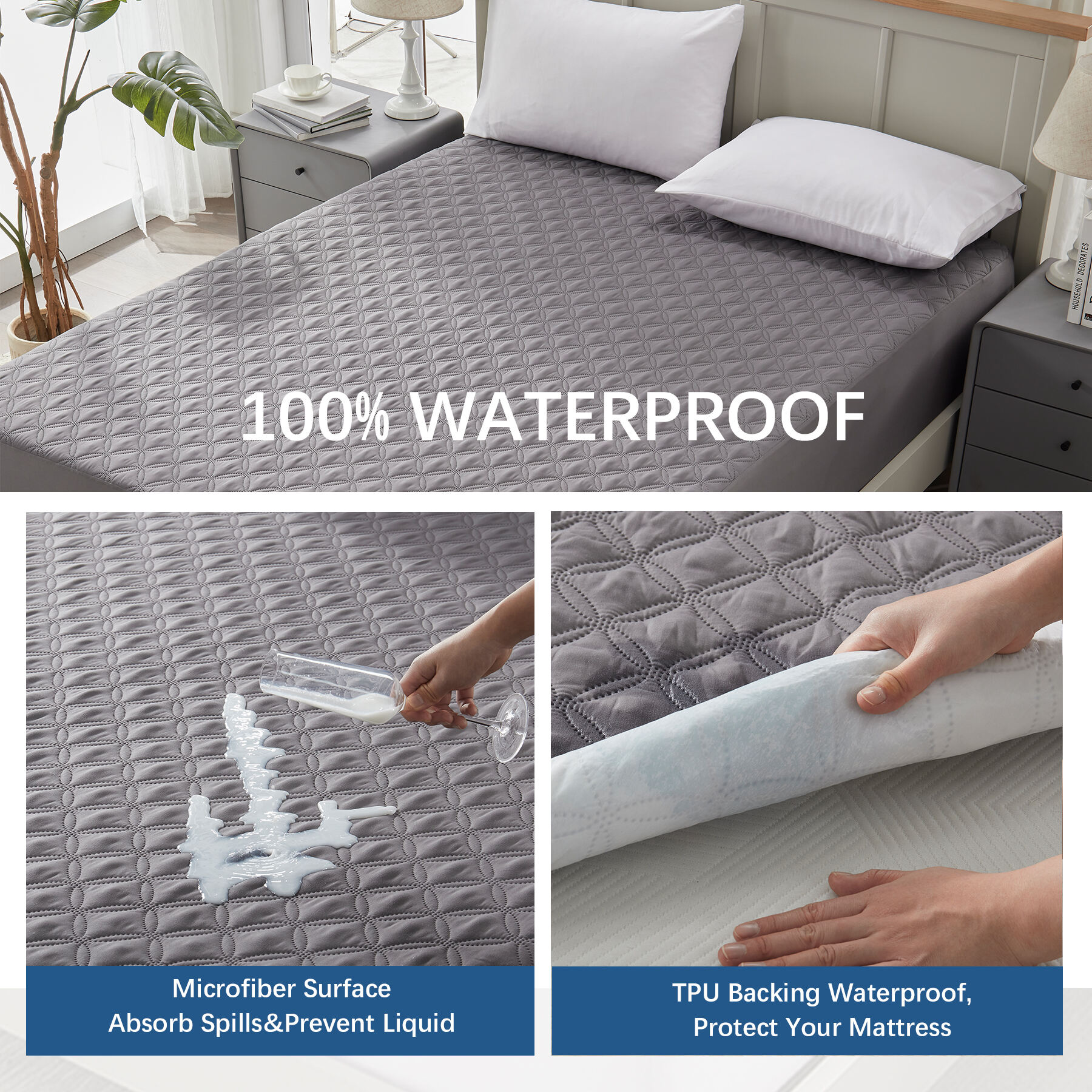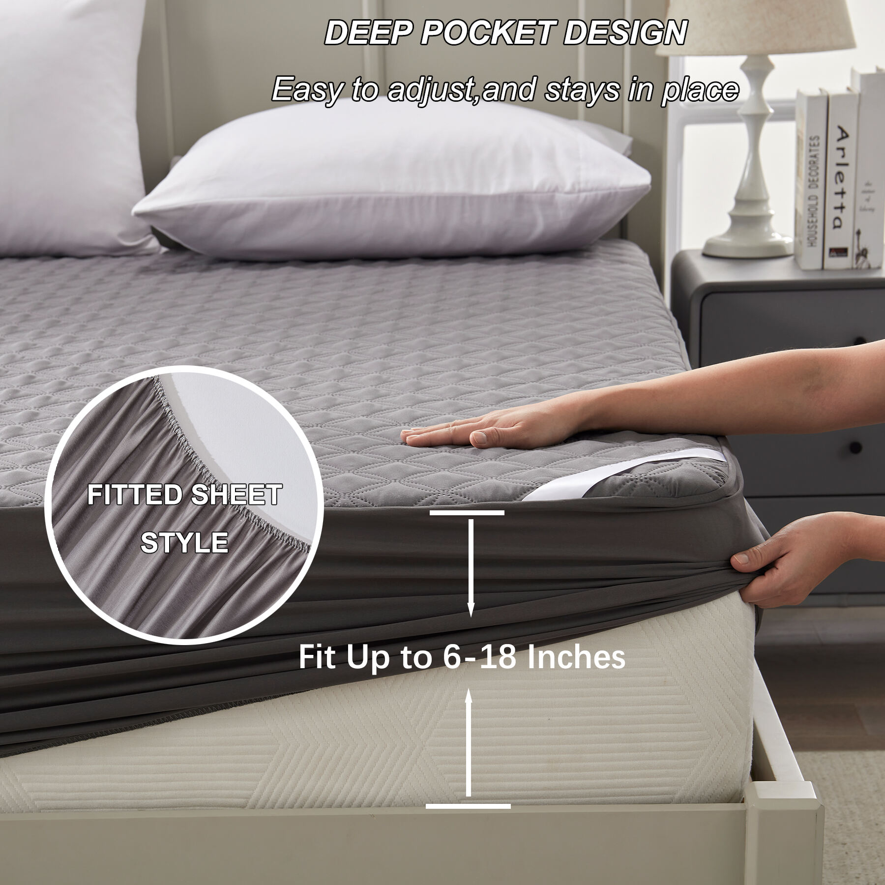 Skin Friendly Waterproof Mattress Protector,Breathable Soft Filling Mattress Pad,6''-18'' Deep Pocket Mattress Cover Washable(Gray)