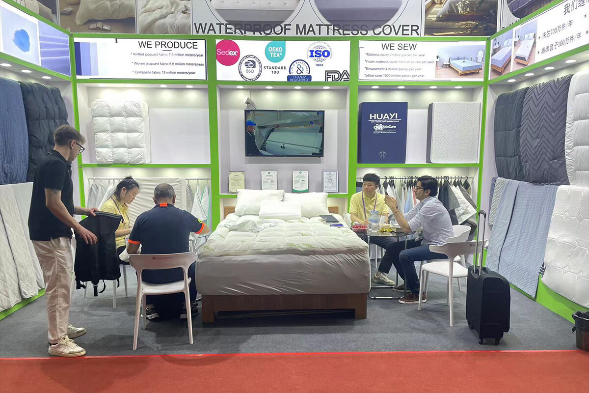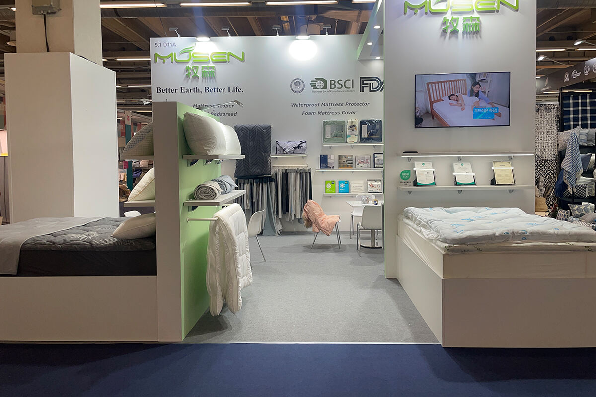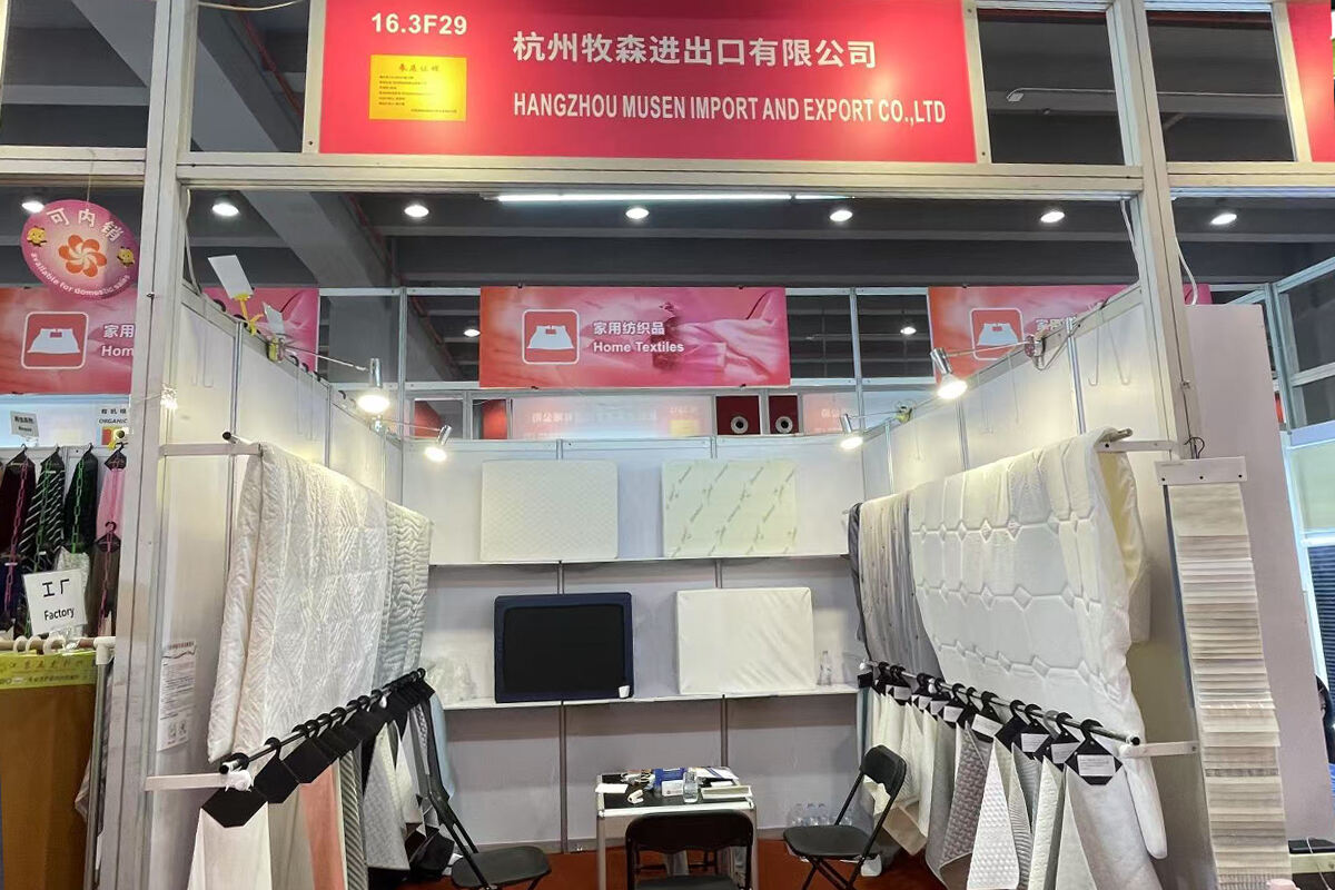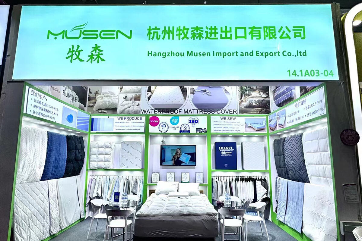 Bawat booth ng Hangzhou Musen ay isang maingat na ginawang showcase. Halimbawa, ang mga booth na may malinaw na signage na "Hangzhou Musen Import and Export Co., Ltd." Ang disenyo ay hindi lamang nakakaakit ng mata kundi din naman ay mataas ang pag-andar. Ang layout, kung saan ay maayos na nakapatong ang mga produkto sa bahay tulad ng cover ng kutson, kumot, at unan, ay nagbibigay-daan sa mga bisita na madaling mag-browse at maranasan ang mga produkto.