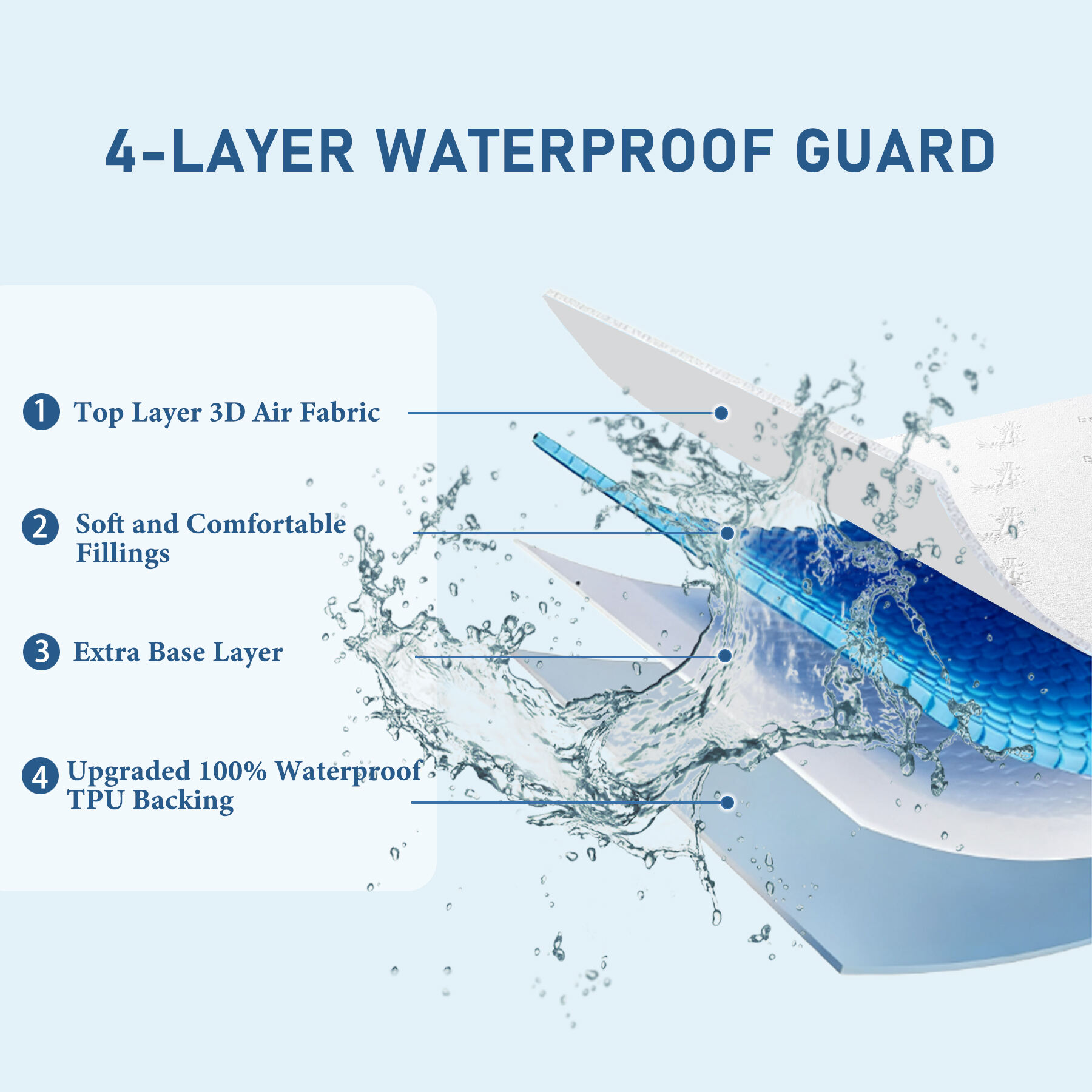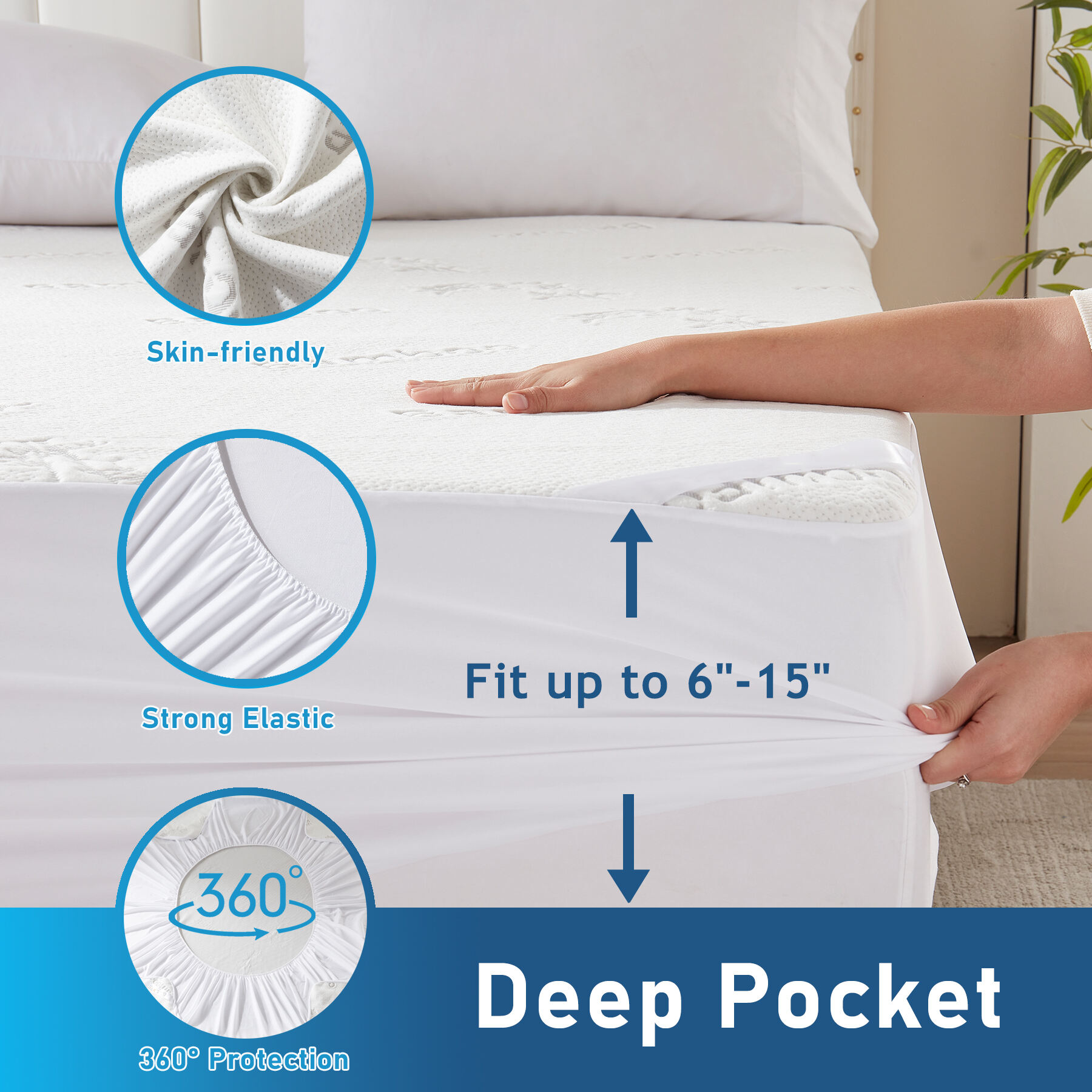 Waterproof Mattress Protector, Bamboo Mattress Cover Fitted 6"-15" Deep Pocket, 3D Air Fabric Mattress Pad Noiseless Machine Washable